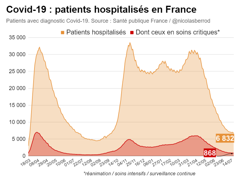 Rappelons aussi que ces données sont par date de déclaration de l'hospitalisation (le jour où l'hôpital fait remonter l'information), et non par date de survenue de l'hospitalisation. D'où des rattrapages possibles.