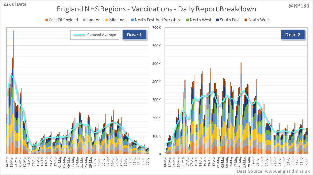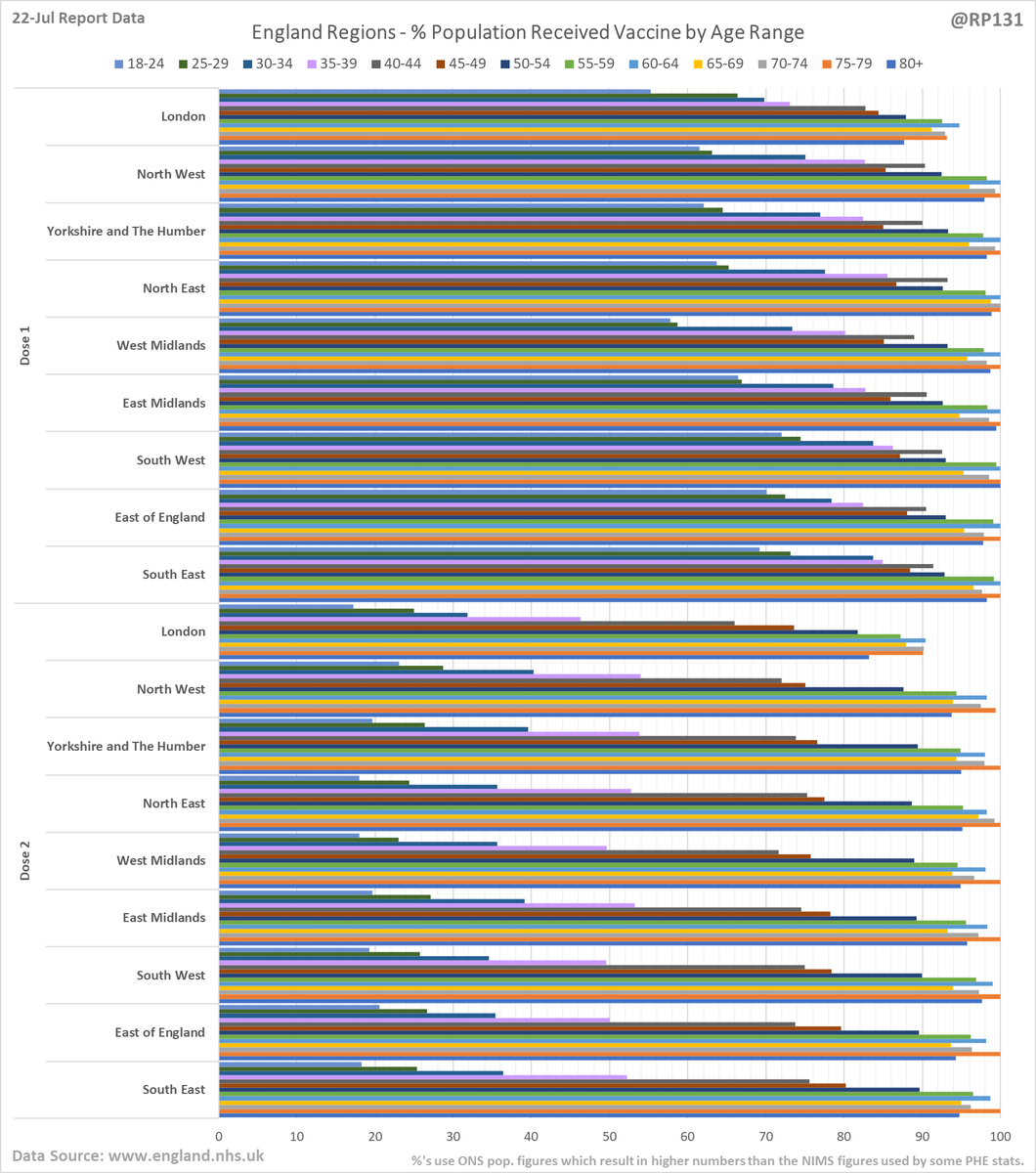 England #NHS region vac. chart based on today's (22-Jul) report.