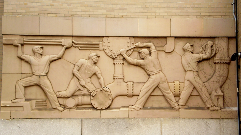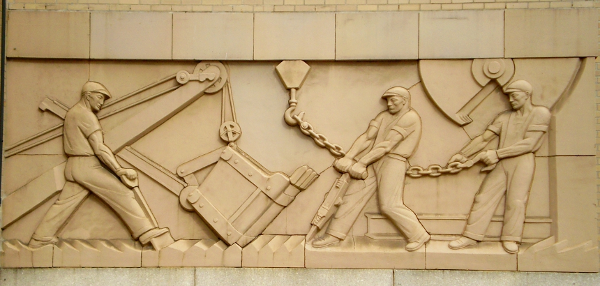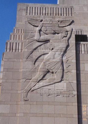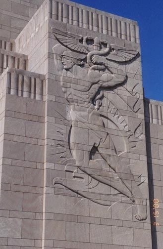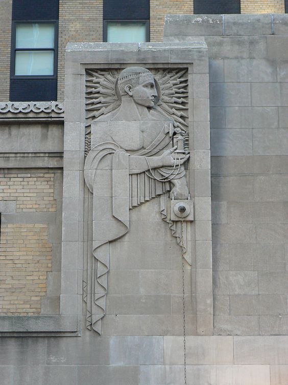 the lost american tradition of Bas-relief, apollo using the telephone in nyc, in cincinnati rail station and a wonderful one with An inscription on the west wall of Berkeley High School "the spirit of the New Deal builders". The bas-relief was done by Jacques Schnier.