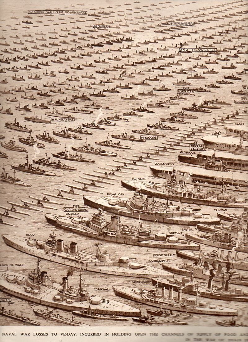 It graphically presents every ship lost by Great Britain in the defense of “holding the seas against the Axis Powers