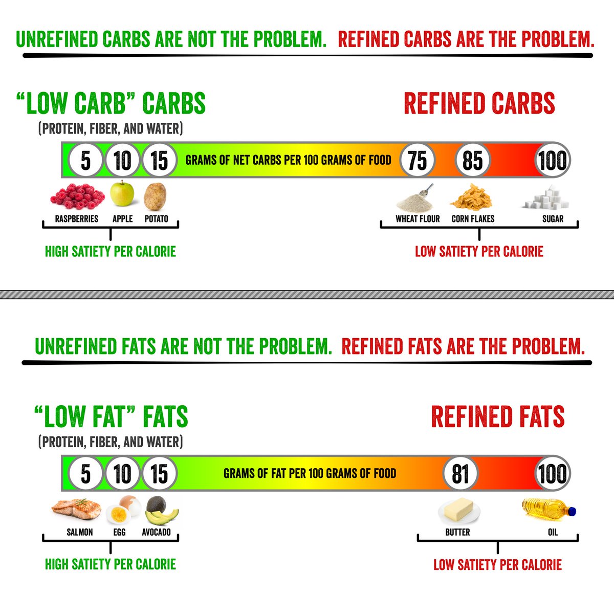 This further underscores the fact that the cause of obesity is not necessary “carbs” or “fats”, but rather REFINED carbs AND fats. Once again, the carb versus fat war, like plants versus animals, is a false dichotomy and these distract us from the real issues.
