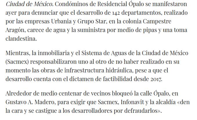 [9] Esto es porque el SACMEX no revisa la disponibilidad al momento de elaborar los dictámenes (aun cuando está obligado), sino más bien la existencia o inexistencia de infraestructura. Lo que importa es que haya tubos, si pasa el agua o no por los mismos, ya no es relevante.