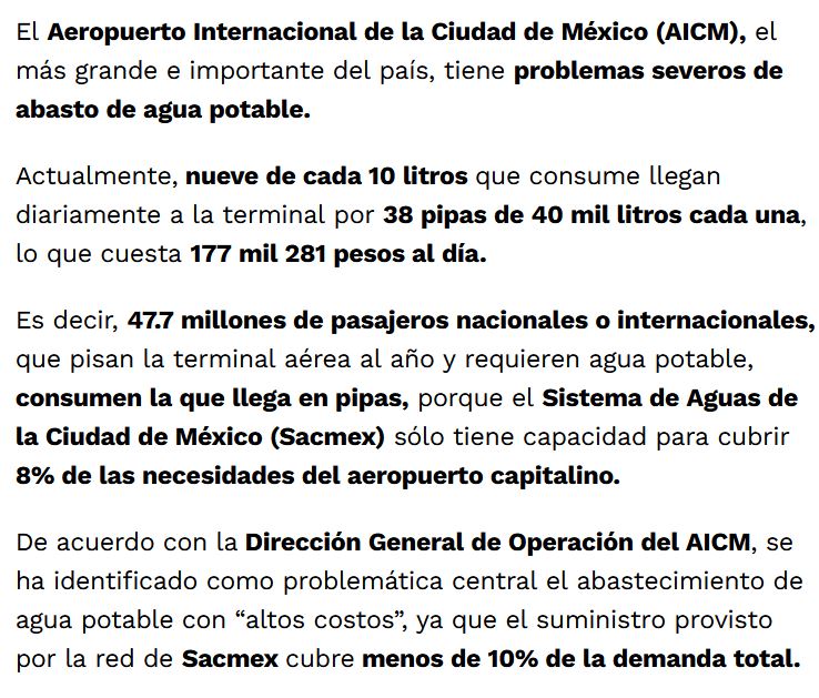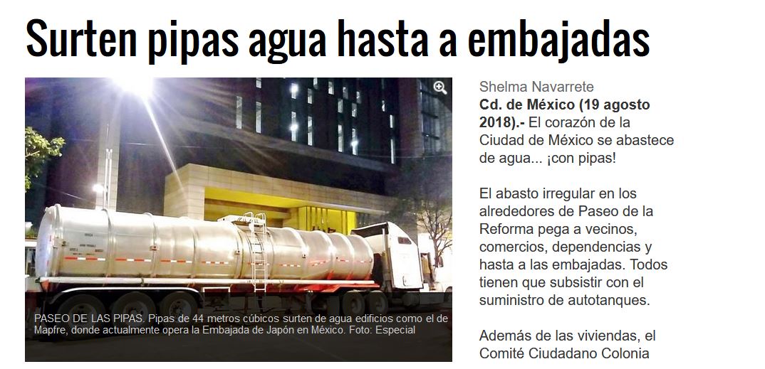 [4] El problema es serio. El Aeropuerto se ha tenido que abastecer por medio de pipas, al igual que un buen número de desarrollos en Reforma.