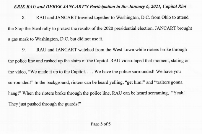 Plea docs are in for Jan. 6 defs Derek Jancart & Erik Rau, and include info that wasn't in charging docs — Rau taped rioters rushing the Capitol and was heard saying, "We made it up to the Capitol... We have the police surrounded! We have you surrounded!" s3.documentcloud.org/documents/2101…