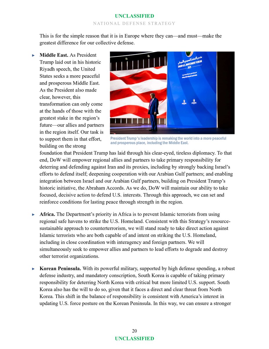 1/ The Trump administration's new National Defense Strategy states South Korea is capable of taking "primary responsibility for deterring North Korea with critical but more limited U.S. support", calling this a "shift in the balance of responsibility".