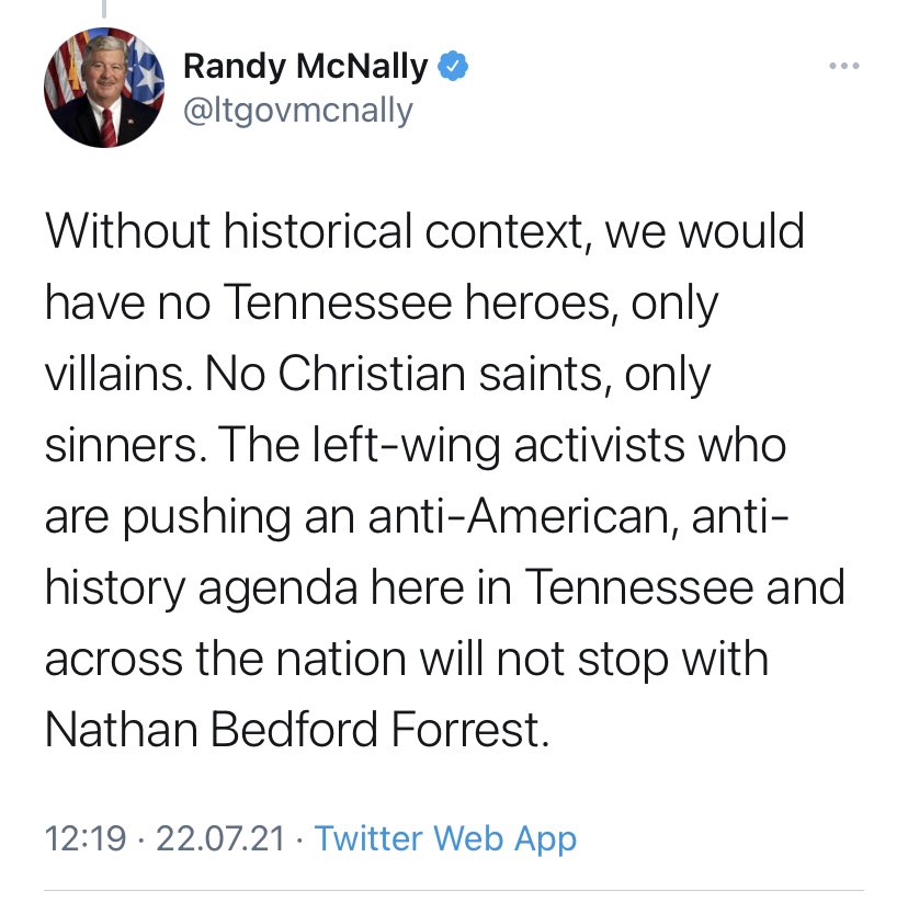 No better way of telling the world who you really are than to go all “They’re coming for our heroes!!” over the removal of a statue of *Nathan Bedford Forrest*