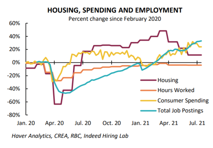 ...Canada's over-heating housing market has started to slow from the spring, but online job postings and consumer spending remain strong.