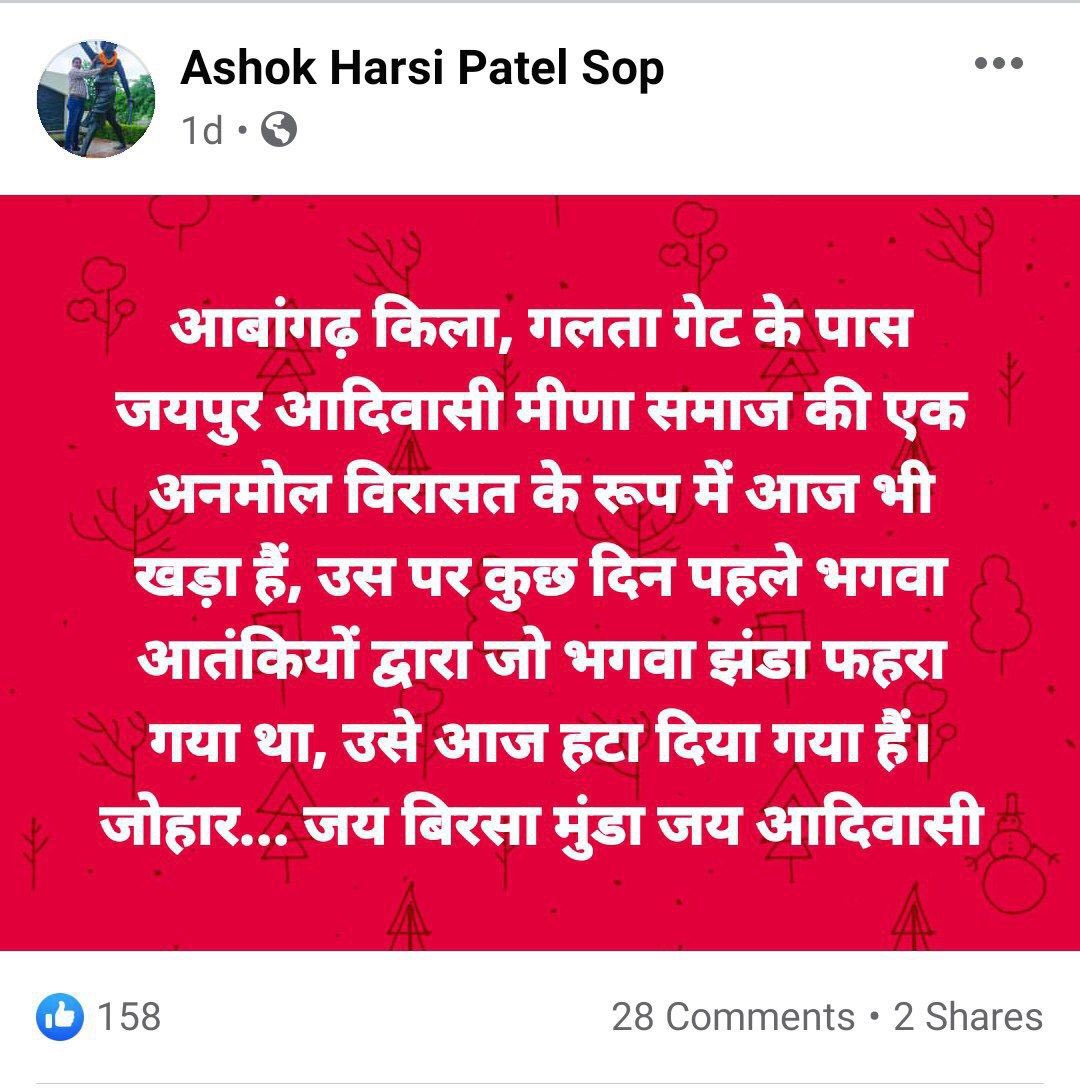Thread- So you must have seen the news of congress MLA Ramkesh Meena tearing down a bhagwa flag at Galta gate, Jaipur, by now.