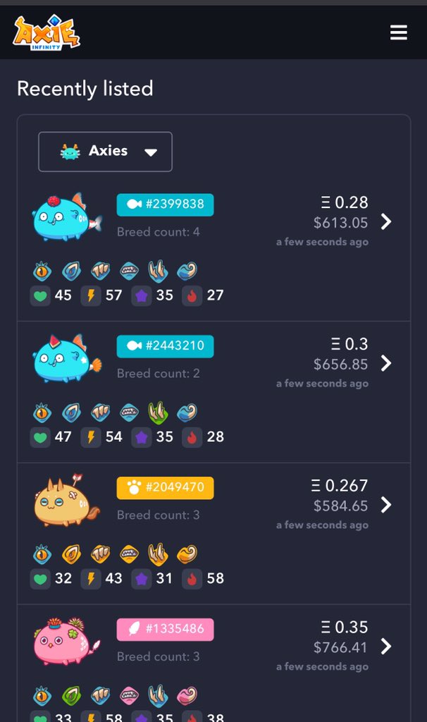 #AxieInfinity oynamak için en az üç Axie karakterine sahip olmanız gerekiyor. Bu da sizi otomatikman kendi pazar yerine yönlendiriyor. Bu aşamaya kadar bir bilgisayar oyunu ve bir NFT pazar yeri ile karşılaştık.