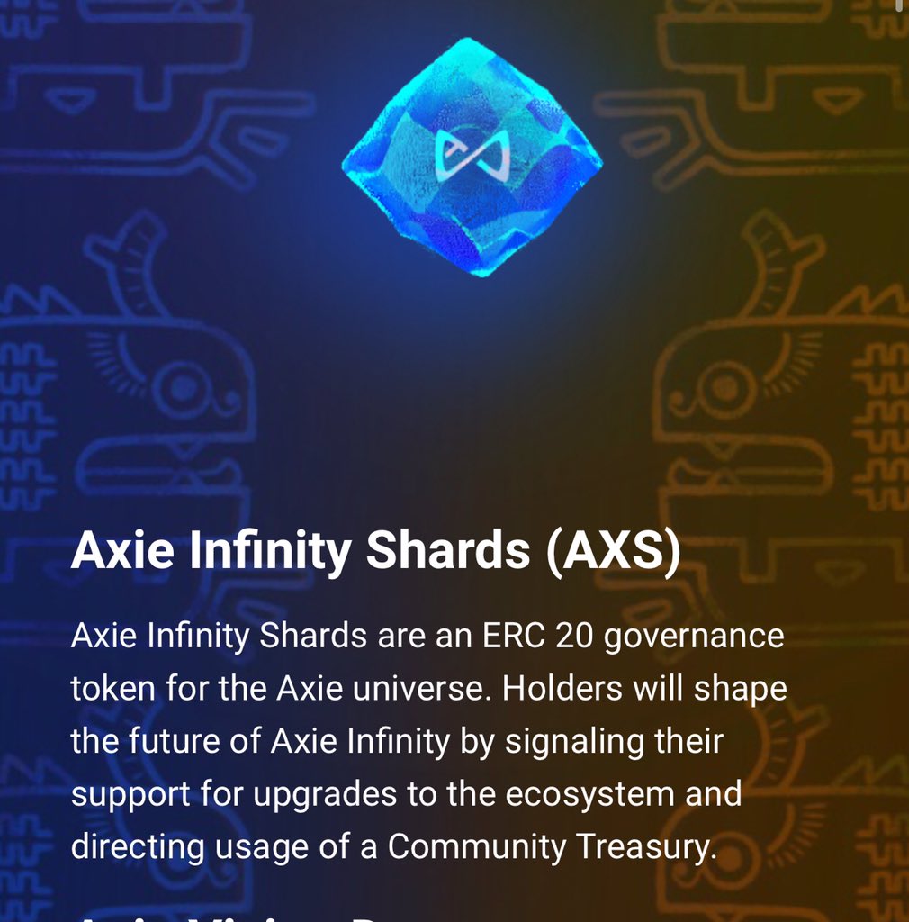$AXS #AxieInfinity oyununun yönetim token’ı. Yani bu oyunun kitlesi içinde yer alıp bu token’a sahip olanlar, projenin atacağı adımlarda söz sahibi olabiliyor. ++