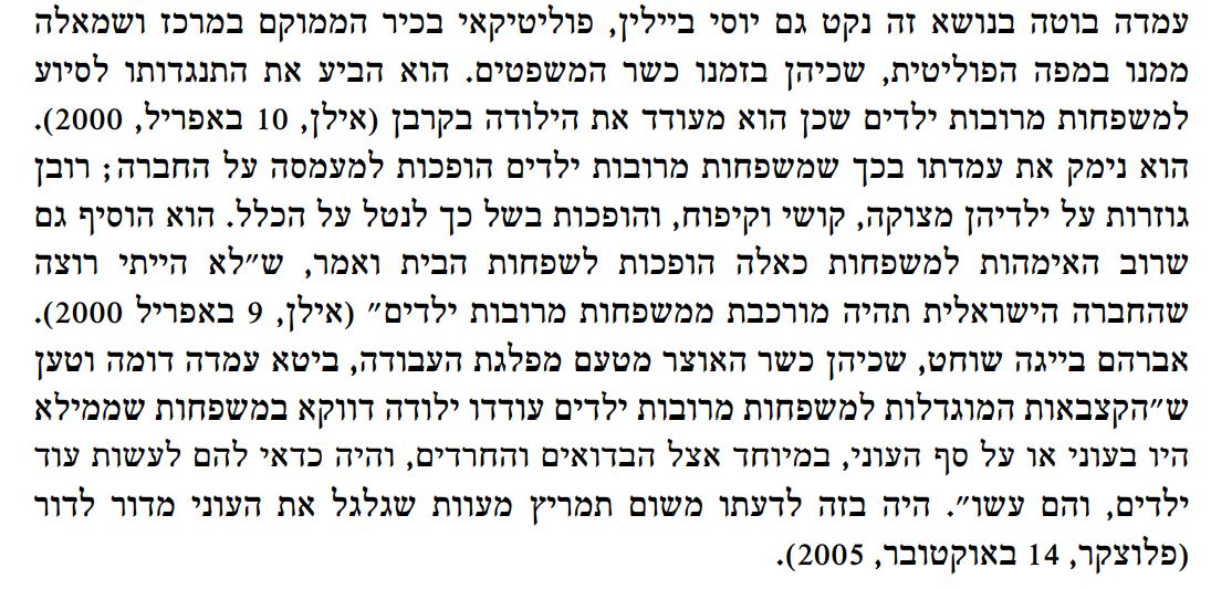 כפי שהוא מראה, עיתון הארץ במאמרי המערכת ובטורי הדעה של נחמיה שטרסלר, הצטרפו בחדווה לתפיסה שהקצבאות מובילות ל"תהליך ההרסני של הגדלת מספר הילדים במשפחות העניות". והנה עוד כמה פנינים של פוליטיקאים מהמרכז-שמאל ששכחו את שמאלניותם: