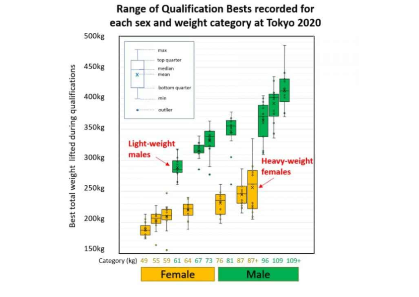 Weight lifting is divided into weight categories. The bigger the lifter the more weight they can lift.