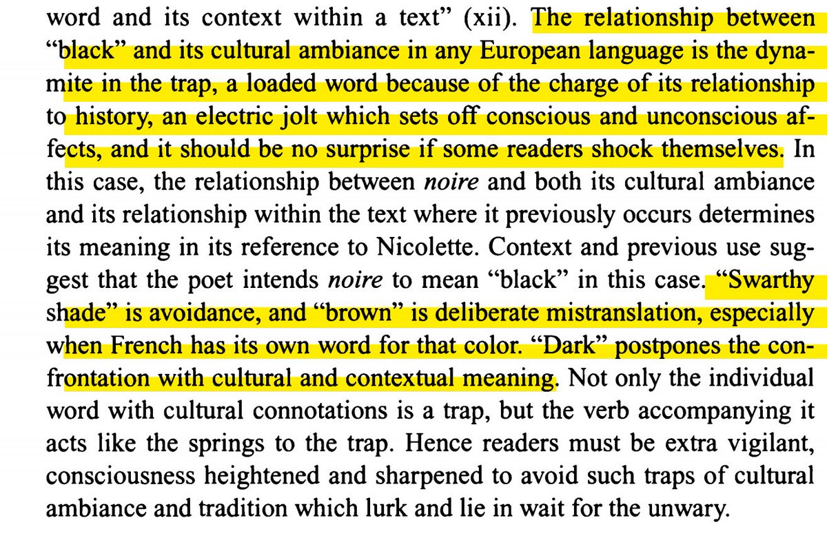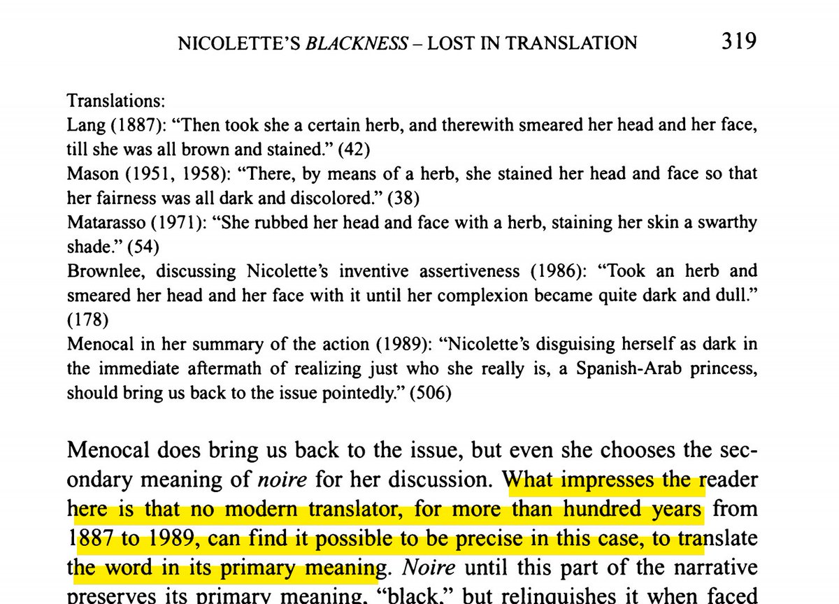 🧵: Let me show you Jacqueline de Weever's pioneering 1994 study on how modern translators of medieval texts often reinforce ideas that Blackness cannot be beautiful, & how they claim, in their translations, that blackness is a "stain". #MedievalTwitter