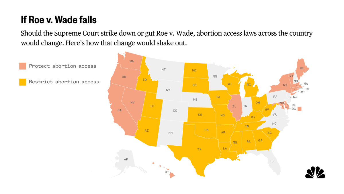 @chloe_aatkins In the absence of Roe v. Wade, dozens of states, particularly in the South and Midwest, would likely enact severe restrictions or outright bans on the procedure, & 10 states already have “trigger” bans in place to outlaw abortion if the Supreme Court overturns Roe v. Wade. (8/8)