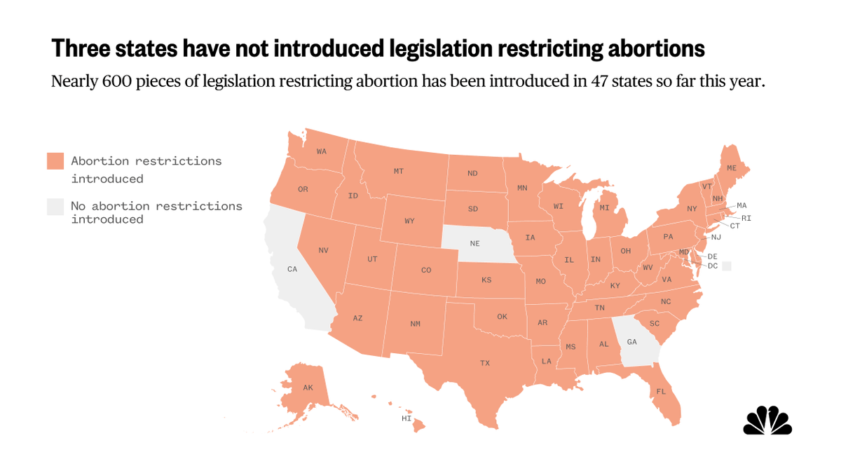 @chloe_aatkins As of now, nearly 600 anti-abortion laws have been introduced in 47 states this year. Three states and Washington, D.C., have not introduced any restrictions in 2021. (5/8)