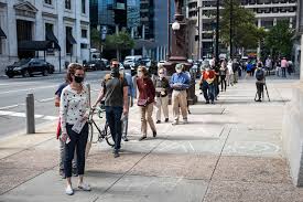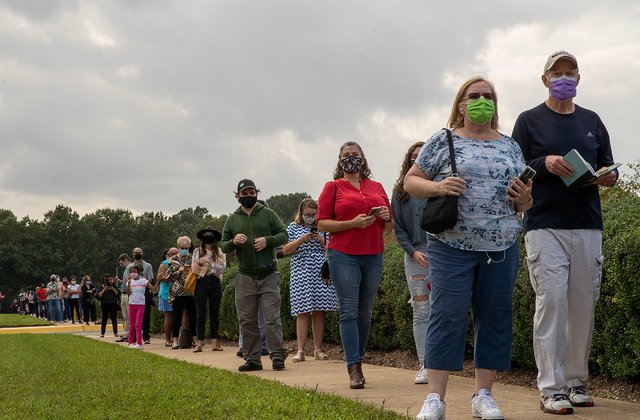 选民如潮涌向投票站。这是当时在弗吉尼亚,佐治亚等地的选民投票排队场景。