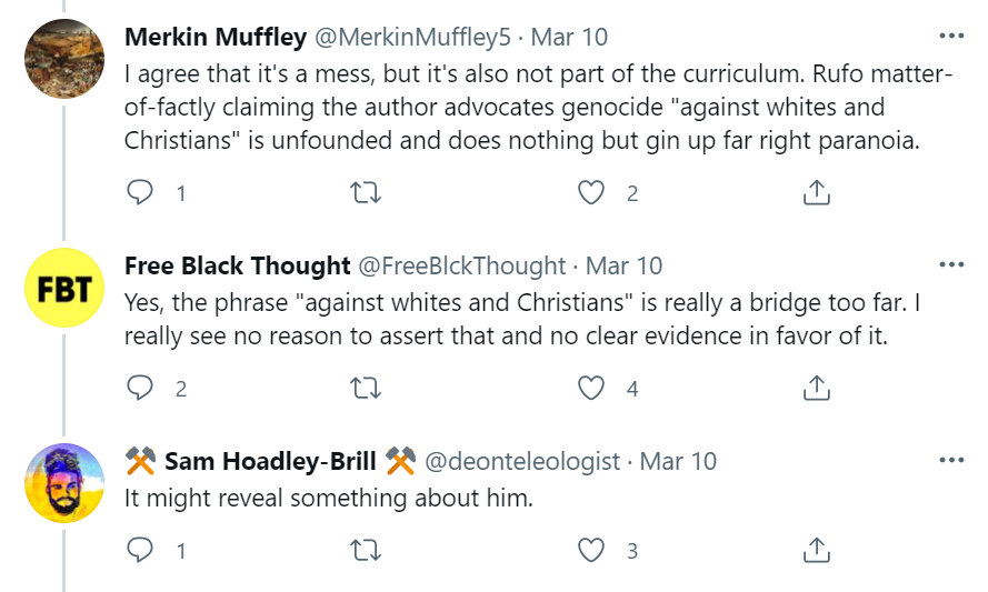 At the very least this tweet reveals Rufo did not subject his interpretation to even the slightest amount of questioning. This reading of Crenshaw would entail that Shelby Steele, Charles Murray, and Bo Winegard are critical race theorists.