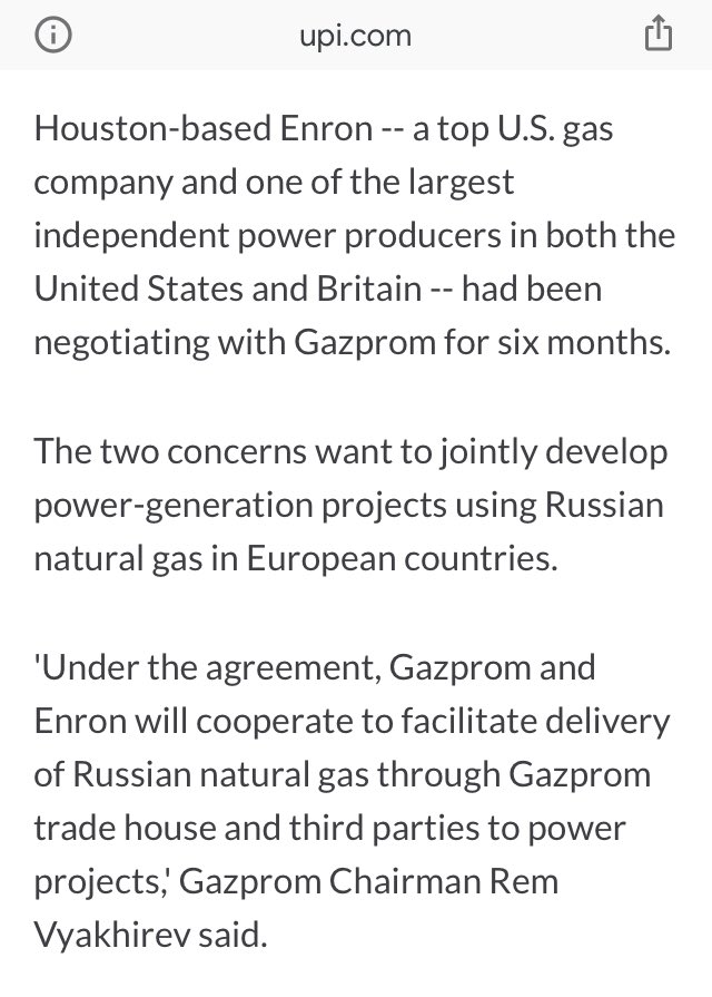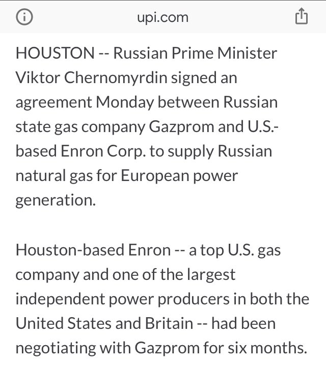 Houston-based Enron…had been negotiating with Gazprom for six months.
