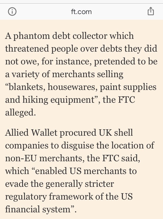 Allied Wallet procured UK shell companies to disguise the location of non-EU merchants, the FTC said, which “enabled US merchants to evade the generally stricter regulatory framework of the US financial system”.