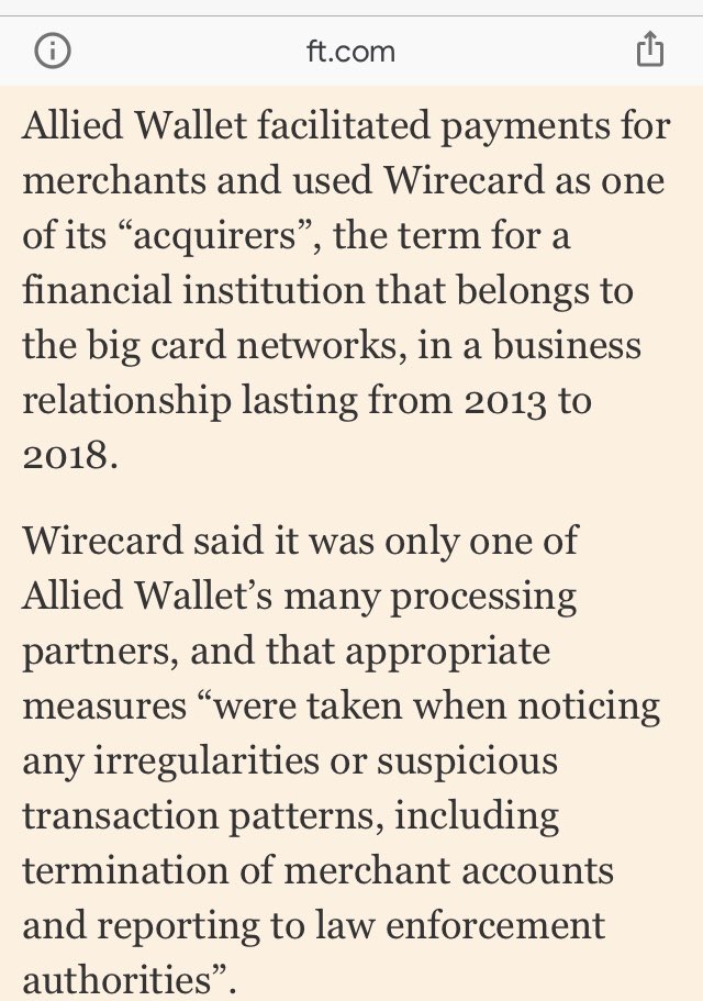 Forgot to state at the beginning that this is obviously an old article from June 2019 (which should be apparent, given the current status of both Wirecard and Allied Wallet).