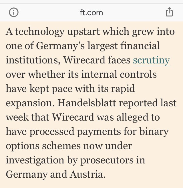 Handelsblatt reported last week that Wirecard was alleged to have processed payments for binary options schemes now under investigation by prosecutors in Germany and Austria.