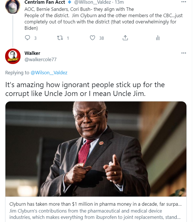 People of the district. Jim Clyburn and the other members of the CBC...just completely out of touch with the district (that voted overwhelmingly for Biden)