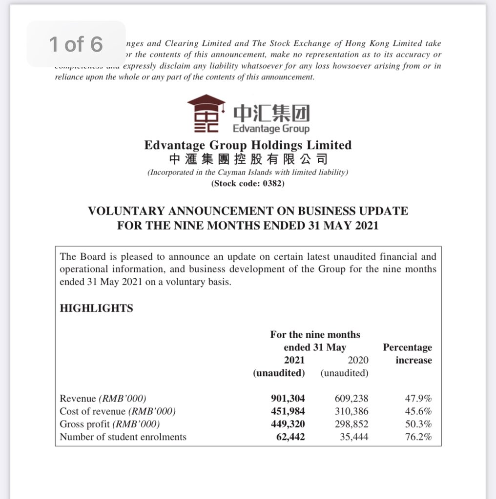 Guangdong focused Edvantage $382.HK - which is also tertiary / vocational education focused has also come out with similar affirmation along with a strong profit beat. www1.hkexnews.hk/listedco/listc…