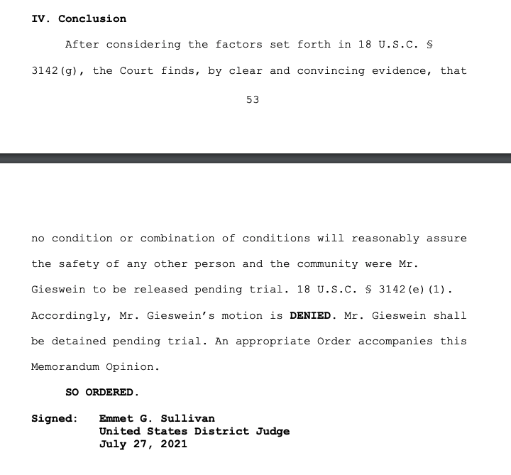 As four officers who responded to Jan. 6 continue to testify before Congress about the violence, a judge has just issued an opinion keeping another defendant charged with assaulting cops that day, Robert Gieswein, in jail while his case is pending s3.documentcloud.org/documents/2101…