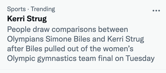 Again: Kerri never competed again, she was carried off the platform by a sexual predator, and Bela Karolyi made her vault a second time by saying, "you better do it" (when mathematically her second vault wasn't necessary for the US to win gold).