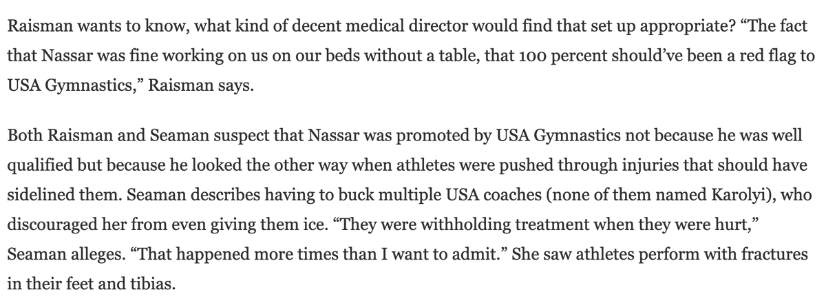 I don't think people truly understand what the Karolyis did and permitted a rapist to do. This is testimony from Aly Raisman and former trainer Melanie Seaman: washingtonpost.com/sports/olympic…