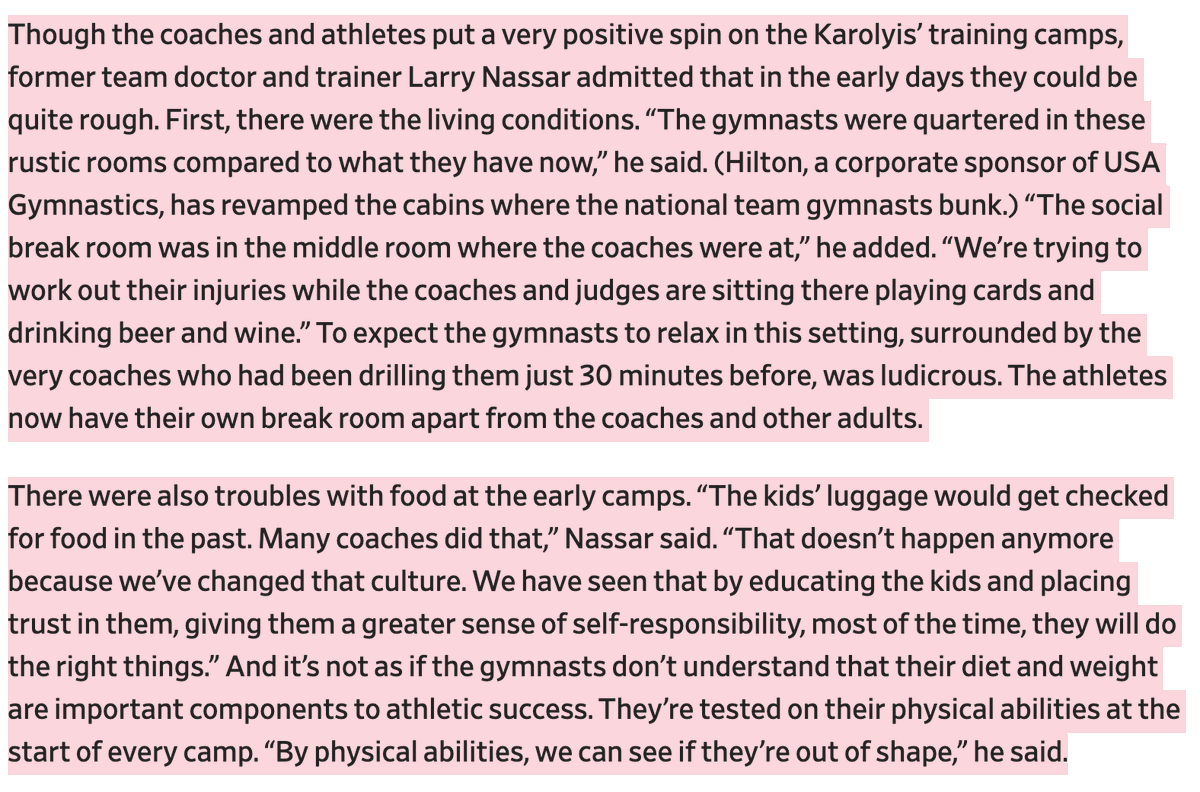 As a side note, it's interesting who was asked to be a knowledgable source on how American gymnastics got so good pre-Rio. (This is before any allegations were published widely).