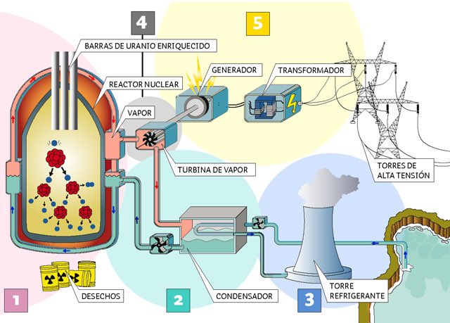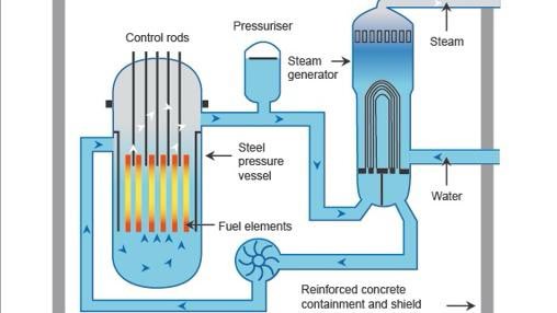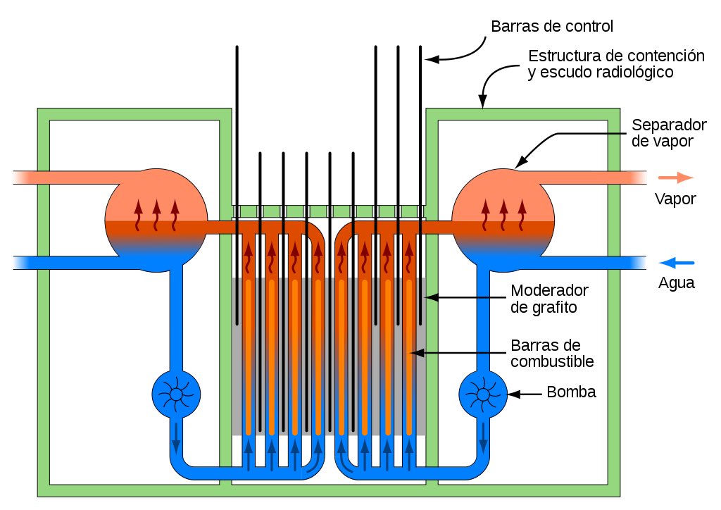 mientras, pasaba el agua liviana presurizada por el centro del nuclear que, absorbiendo el calor del núcleo, se convertiría en vapor. Ese vapor, impulsaba a las turbinas que generan electricidad. El agua también era empleada como elemento moderador de velocidad de los neutrones.
