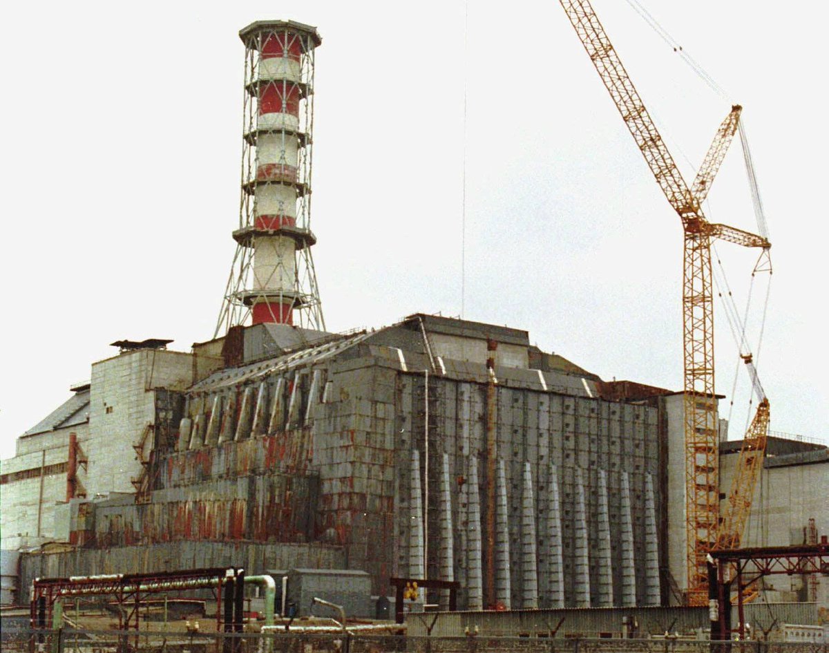 Ese mismo año comenzó la construcción a contrarreloj de una estructura a base de hormigón y acero para cubrir el núcleo del reactor y aislar la radiación, denominado sarcófago. Con una vida útil de 30 años. Medía 170 metros de largo x 66 de ancho x 45 de altura.