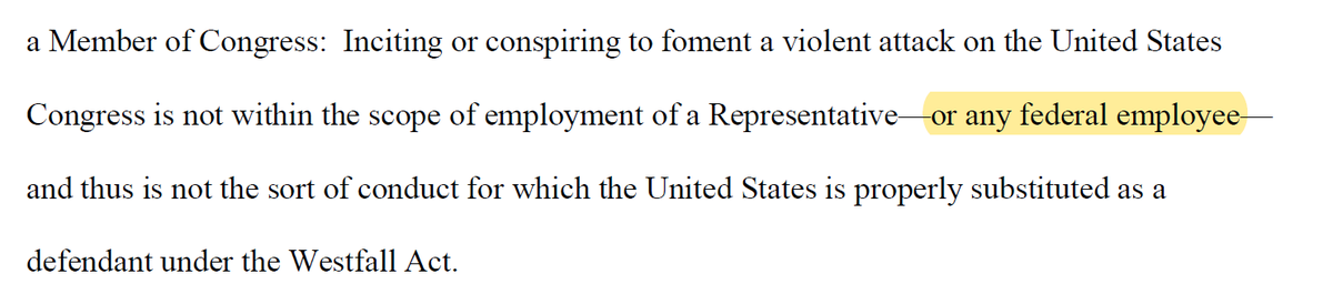 3. Also worth noting that in Trump's brief responding to Swalwell's suit and in Trump's brief responding to Capitol Police officers' suit, Trump's lawyers did indeed try to maintain a Westfall Act claim.