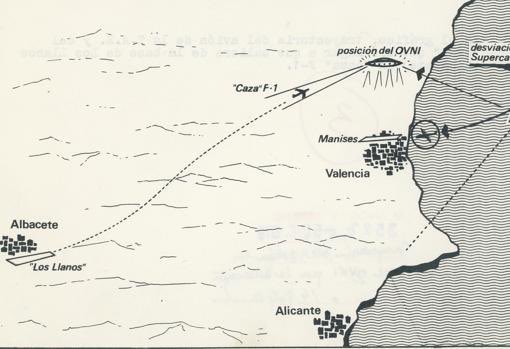 17.- Lerdo de Tejada no puede más. Cree que pueden colisionar con el objeto en cualquier momento así que decide abortar el vuelo y dirigirse a Manises (Valencia) para aterrizar de emergencia.