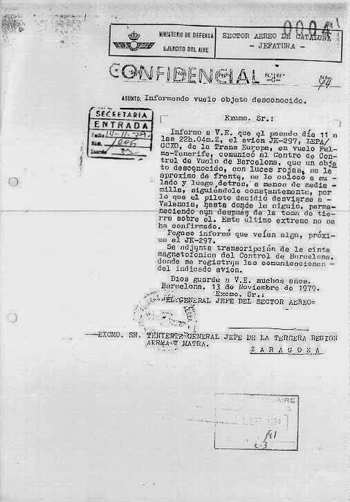 32.- El expediente, desclasificado por el Mando Operativo Aéreo del Ejercito del Aire Español en 1994, concluye que los objetos eran de naturaleza desconocida y que pudieron deberse a ilusiones ópticas de los pilotos.