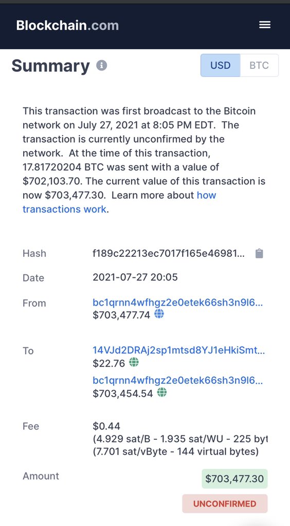 The cost to send a #BTC transaction is completely independent from the amount of money sent.