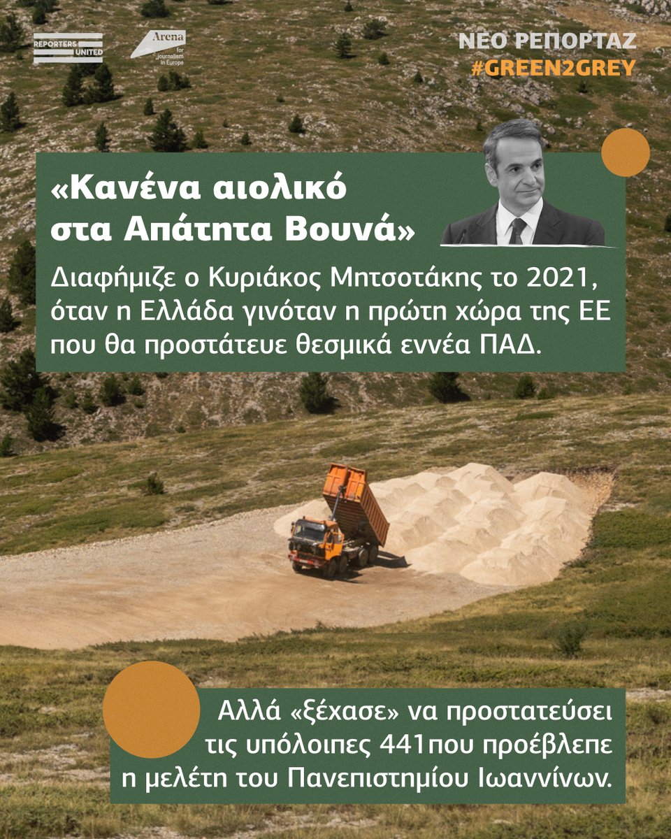 3⃣ «Κανένα αιολικό στα Απάτητα Βουνά», διαφήμιζε ο Κυριάκος Μητσοτάκης το 2021, όταν η Ελλάδα γινόταν η πρώτη χώρα της ΕΕ που θα προστάτευε θεσμικά εννέα Περιοχές Άνευ Δρόμων.