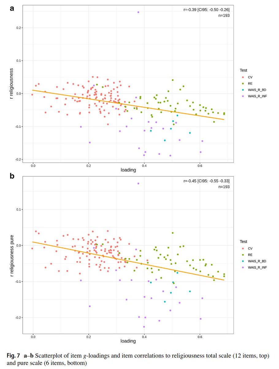 We go further. We have access to some 200 items too, and these also show the Jensen pattern. Note the outliers! The one item that is way out of place is WAIS Information 18, which in fact asks about contents of the Bible. Religious people get it right a lot more often.