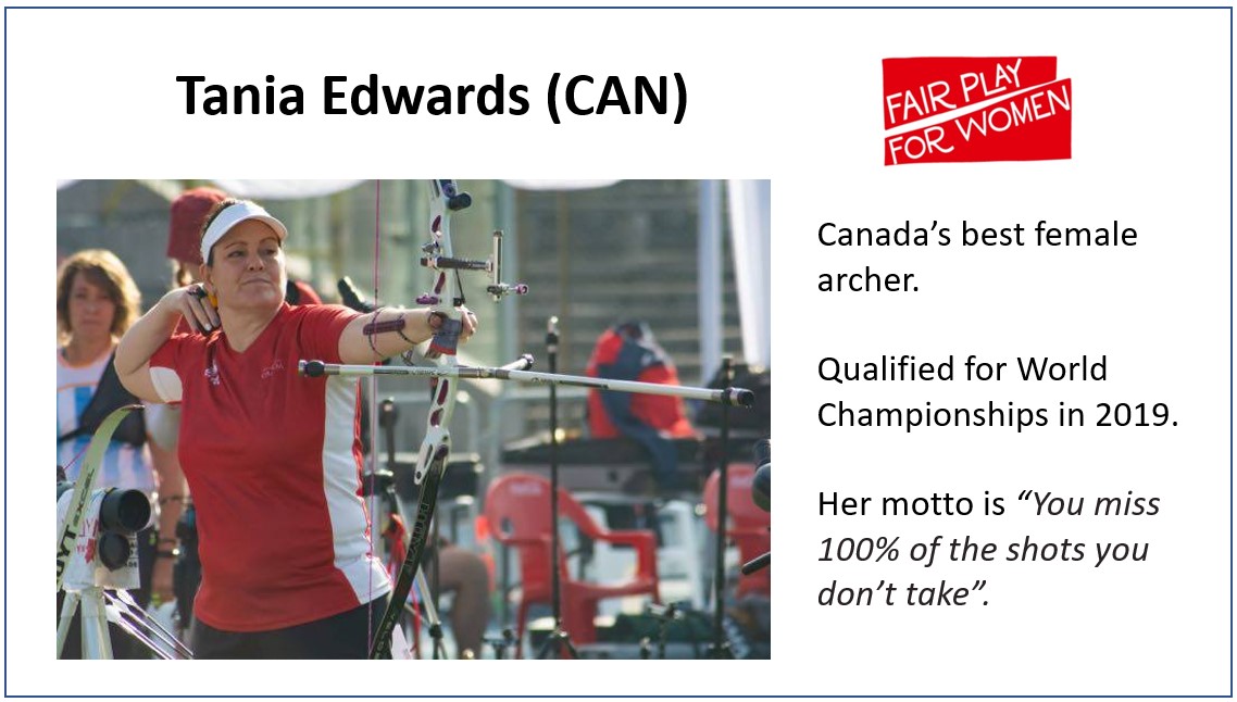 Here’s Tania Edwards, the best female archer in Canada, losing her Olympic spot to a good but not world class male /5