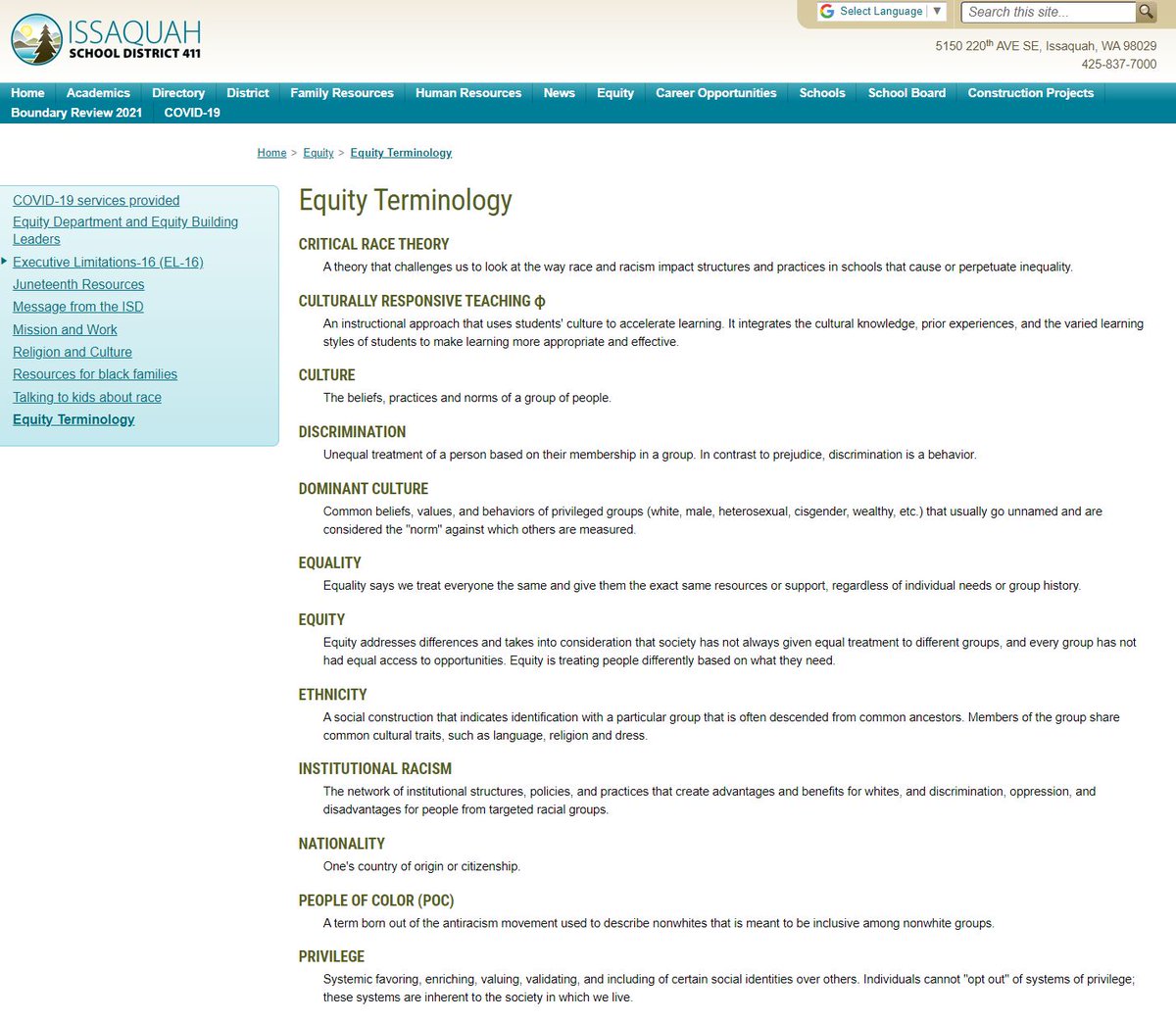 Third, here is a link to the Issaquah School District showing they are teaching Critical Race Theory (CRT) racism in this district, too: issaquah.wednet.edu/equity/termino… …