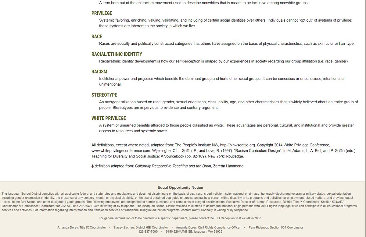 And here's the second Critical Race Theory page from the Issaquah School District website:
