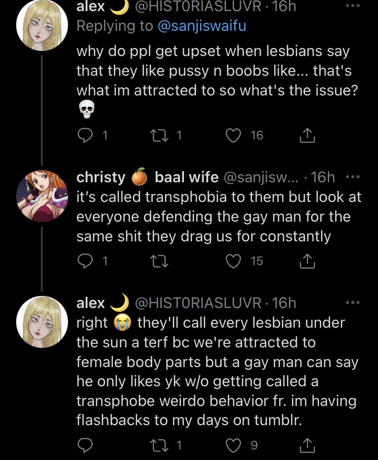 anyway this is why i hate cis lesbians most of y’all are transphobic and don’t understand gender in the slightest