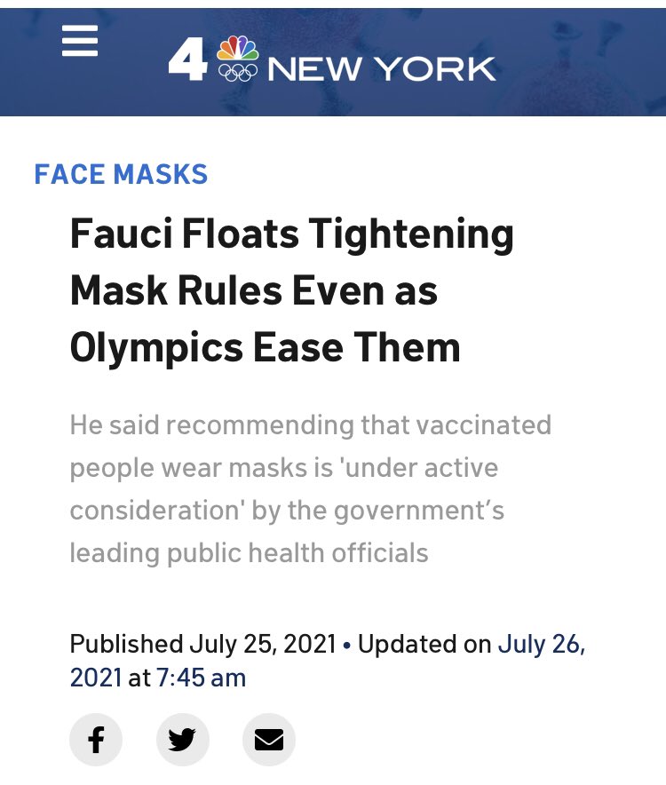 One big, obvious area of flipping is around the benefits of wearing a mask. Dr. Fauci originally said that masks weren’t effective & publicly encouraged Americans not to buy them (guidance he doesn’t regret).
