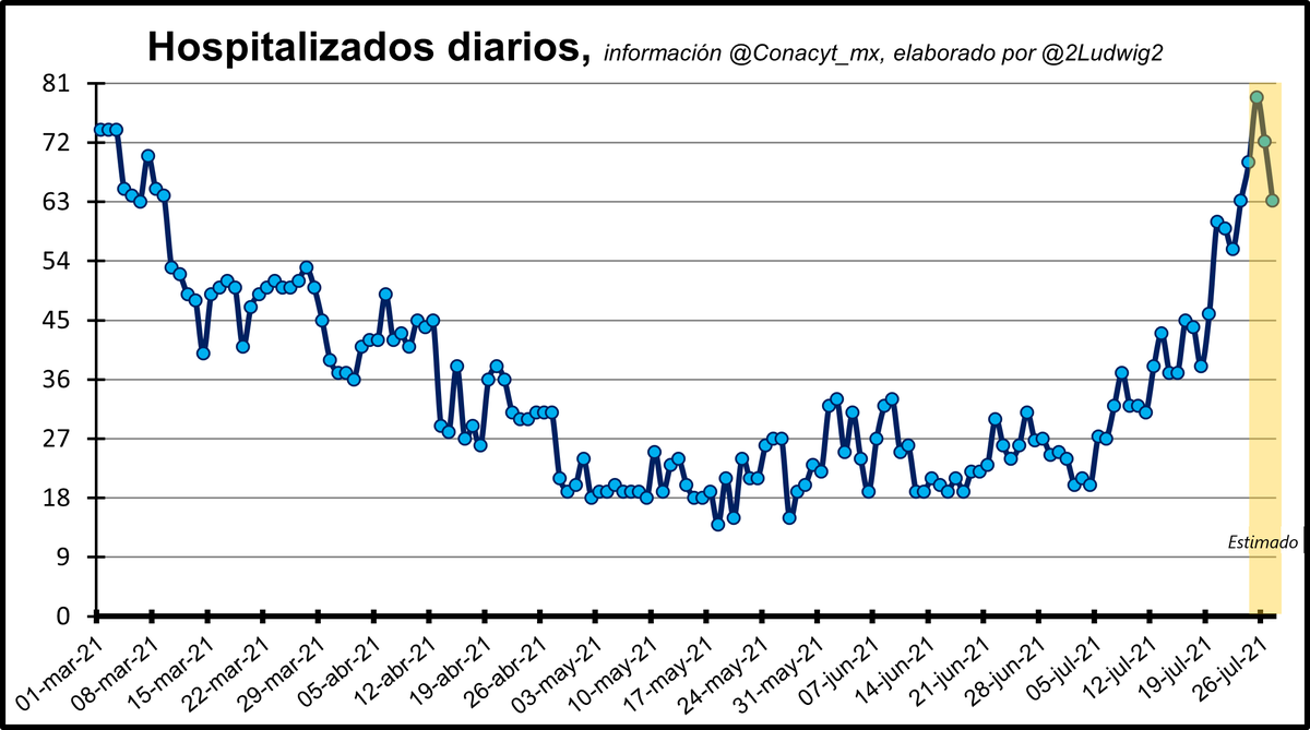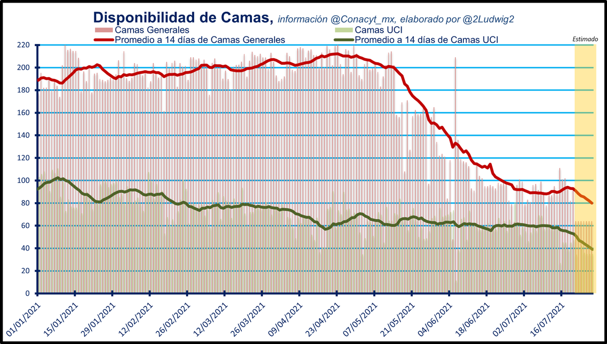 @salud_colima Está es mi estimación, del como iríamos en las Hospitalizaciones en las camas destinadas a pacientes con síndromes respiratorios, ya que como vieron antes en mayo de este año, se desconvirtieron cerca de la mitad.