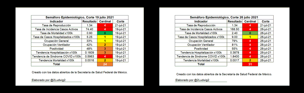 @salud_colima Semáforo de Riesgo COVID-19, cortes 19 y 26 julio 2021.
