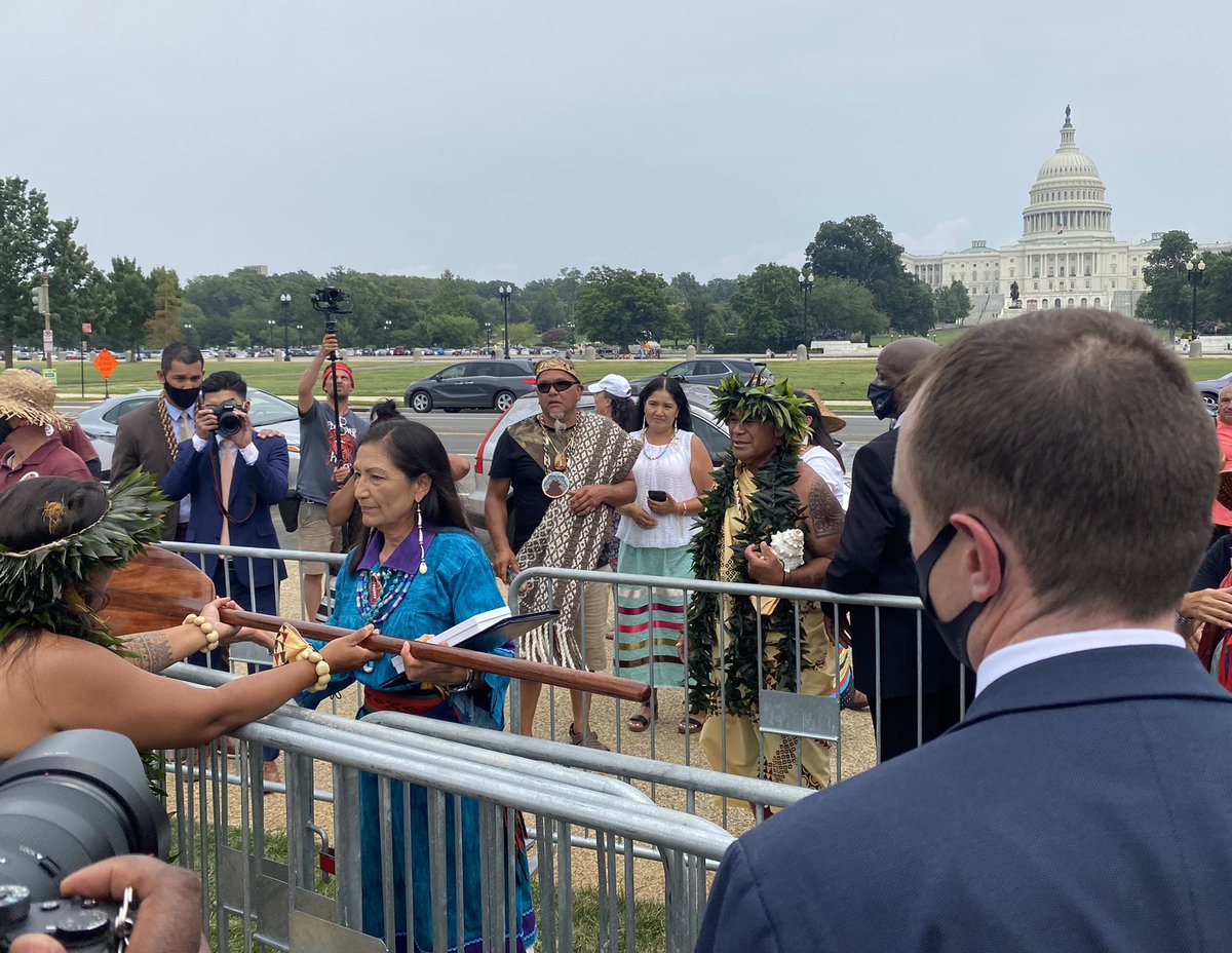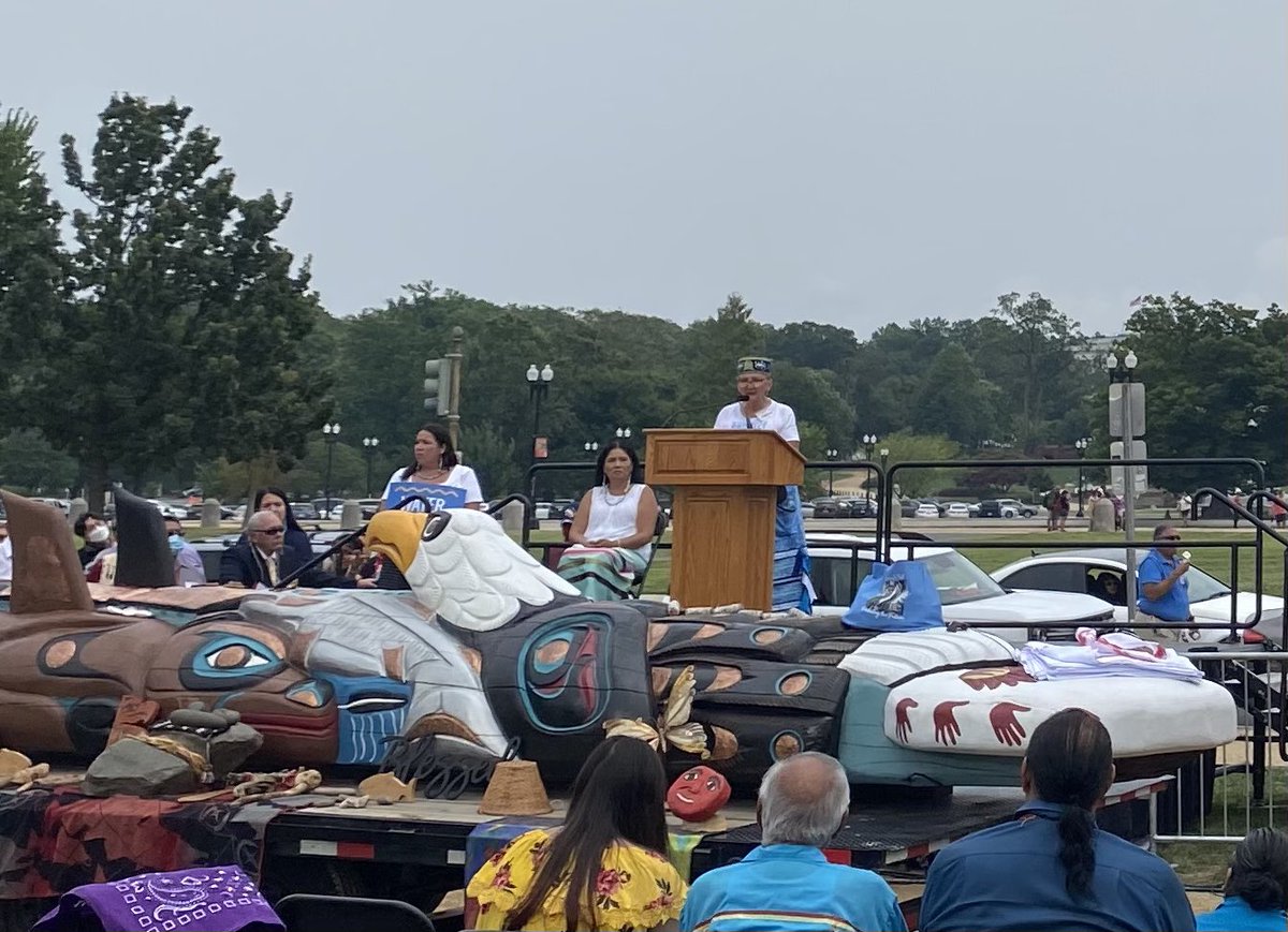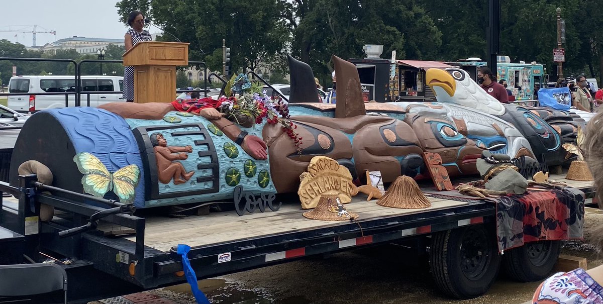 Meanwhile on the National Mall, Tribal leaders + activists about to present @SecDebHaaland with a totem pole carved by Lummi Nation carvers, as a gift to Biden to urge his immediate protection of sacred sites.