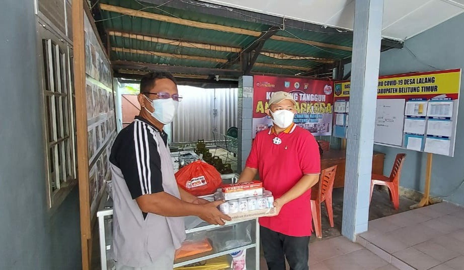 kepada warga yang tengah menjalani isolasi mandiri (isoman) Kali ini kegiatan sosial tersebut dilaksanakan di Desa Lalang. Pasalnya, desa tersebut mempunyai kasus Covid tertinggi di Belitung Timur (Beltim).