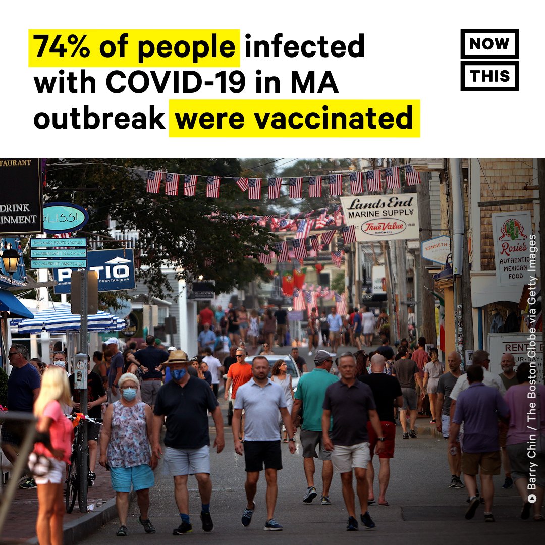 As of Thursday, 882 people were tied to the Provincetown outbreak. Among those living in Massachusetts, 74% of them were fully immunized, yet officials said the vast majority were also reporting symptoms. Seven people were reported hospitalized.