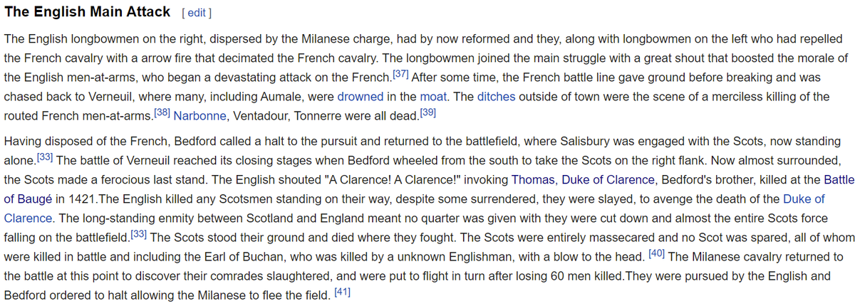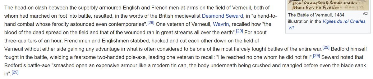 Maybe the only time in the war when French and English knights stood toe to toe in an open field and just slashed it out for hours without any interference from other units or bad weather en.wikipedia.org/wiki/Battle_of…